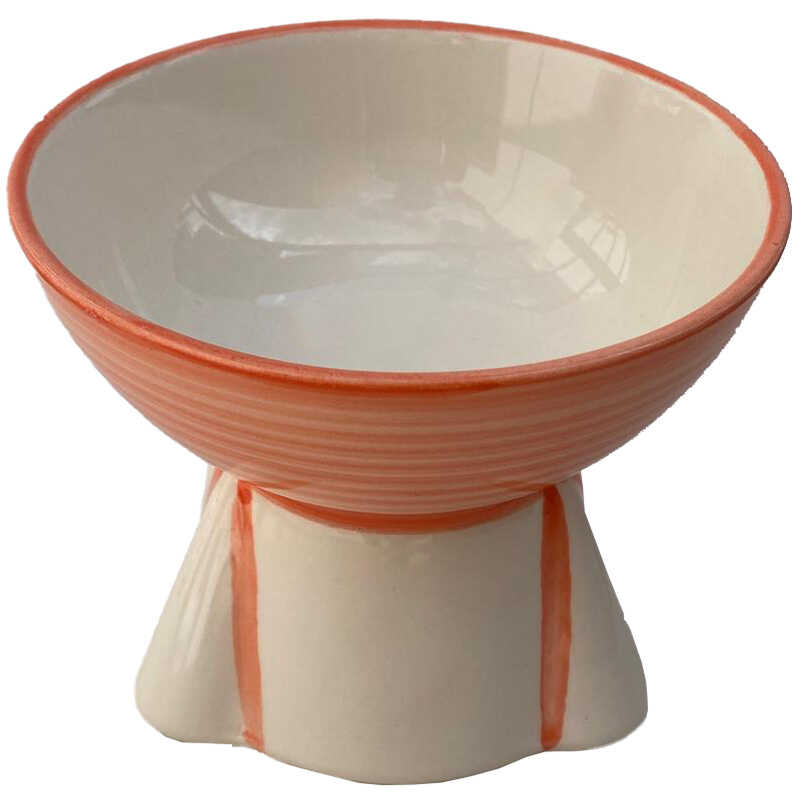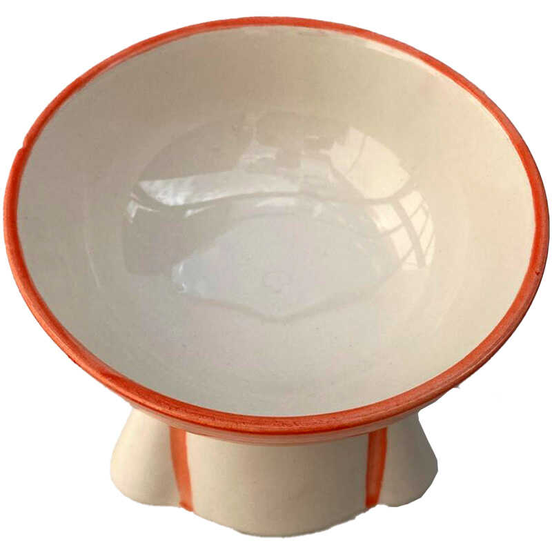 Theebby Ayaklı Seramik Evcil Hayvan Mama / Su Kabı Beyaz-Turuncu