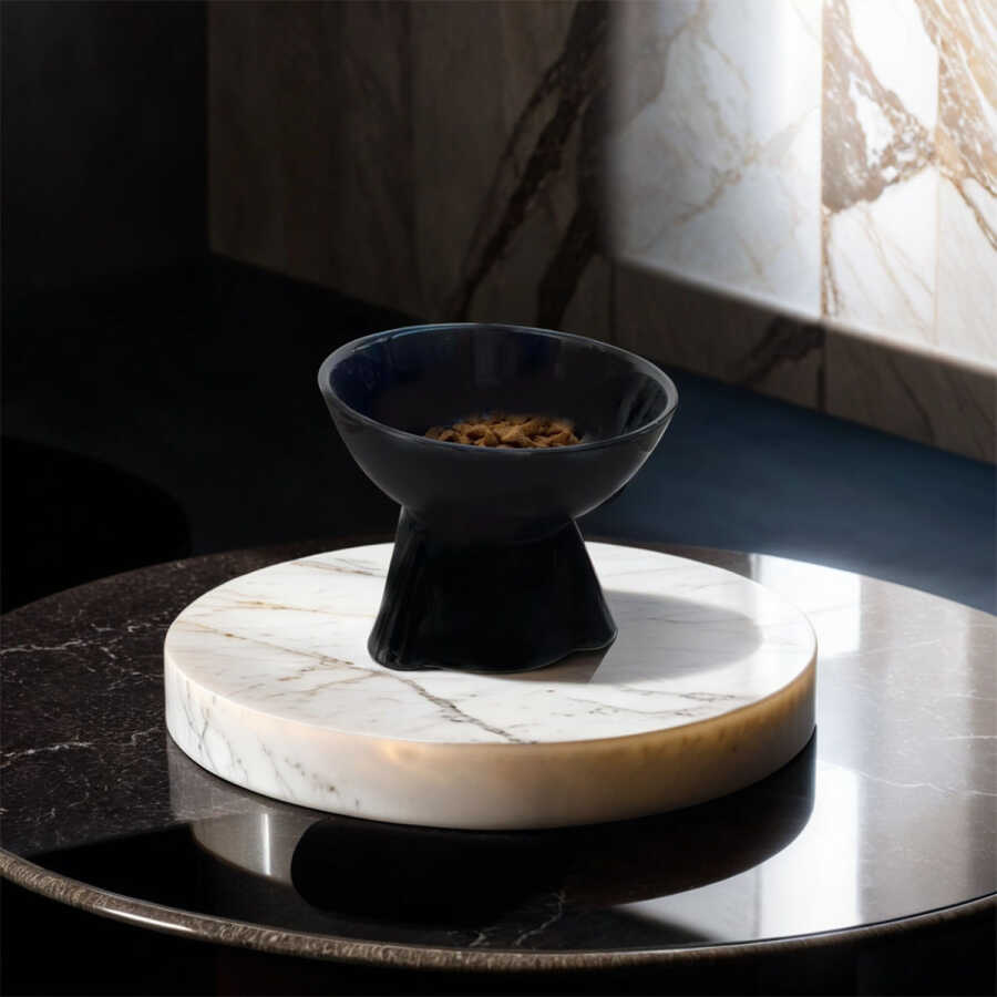 Theebby Ayaklı Seramik Evcil Hayvan Mama / Su Kabı Siyah