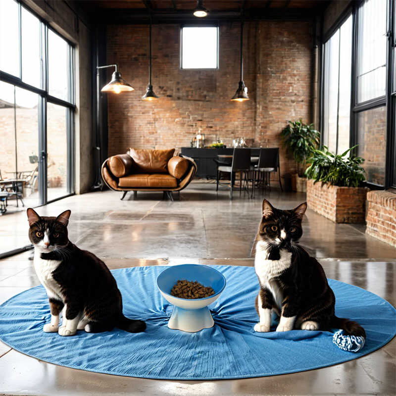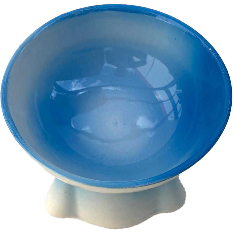 Theebby Ayaklı Seramik Evcil Hayvan Mama / Su Kabı Mavi-Beyaz